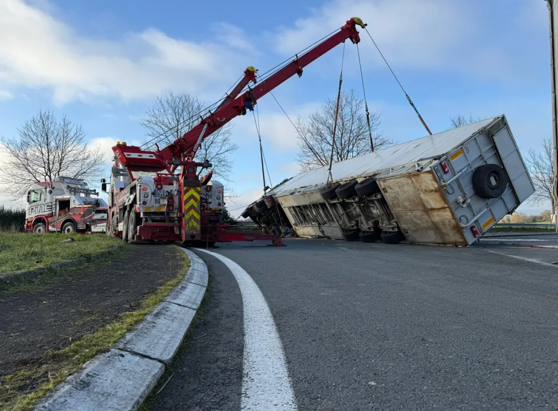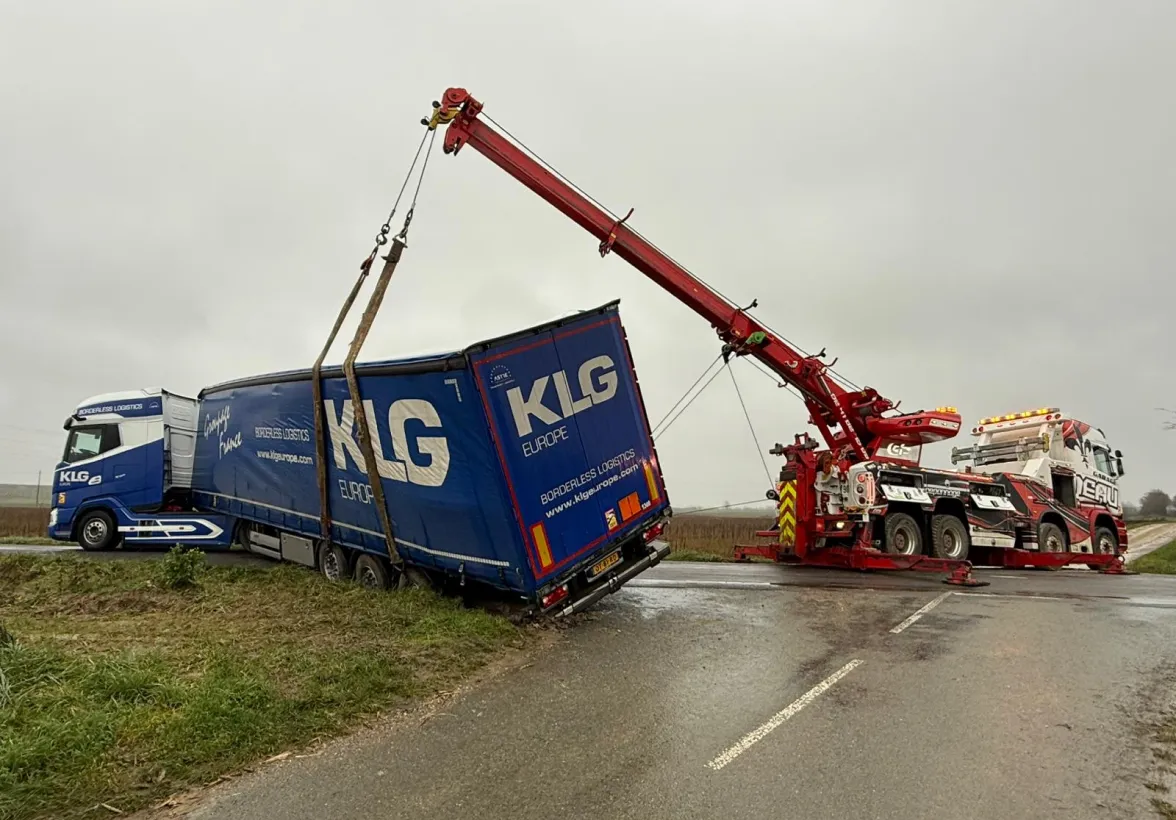 En cas d’accident, de sortie de route ou de renversement, DRS PINEAU procède au relevage de poids lourds et engins, avec ou sans chargement.